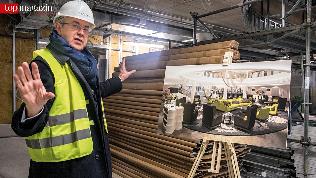 Der riesige Kronleuchter im prunkvollen Ballsaal, die elegante Cocktail- Bar, ein prächtiger Kamin – all das konnte man auf der exklusiven Baustellenbegehung des Sofitel Opera nur in Grundrissen erkennen. Die charmanten Erläuterungen von Hoteldirektor Denis de Schrevel ließen die luxuriöse Welt des 5-Sterne-Baus jedoch zumindest in der Vorstellung bereits Form annehmen.