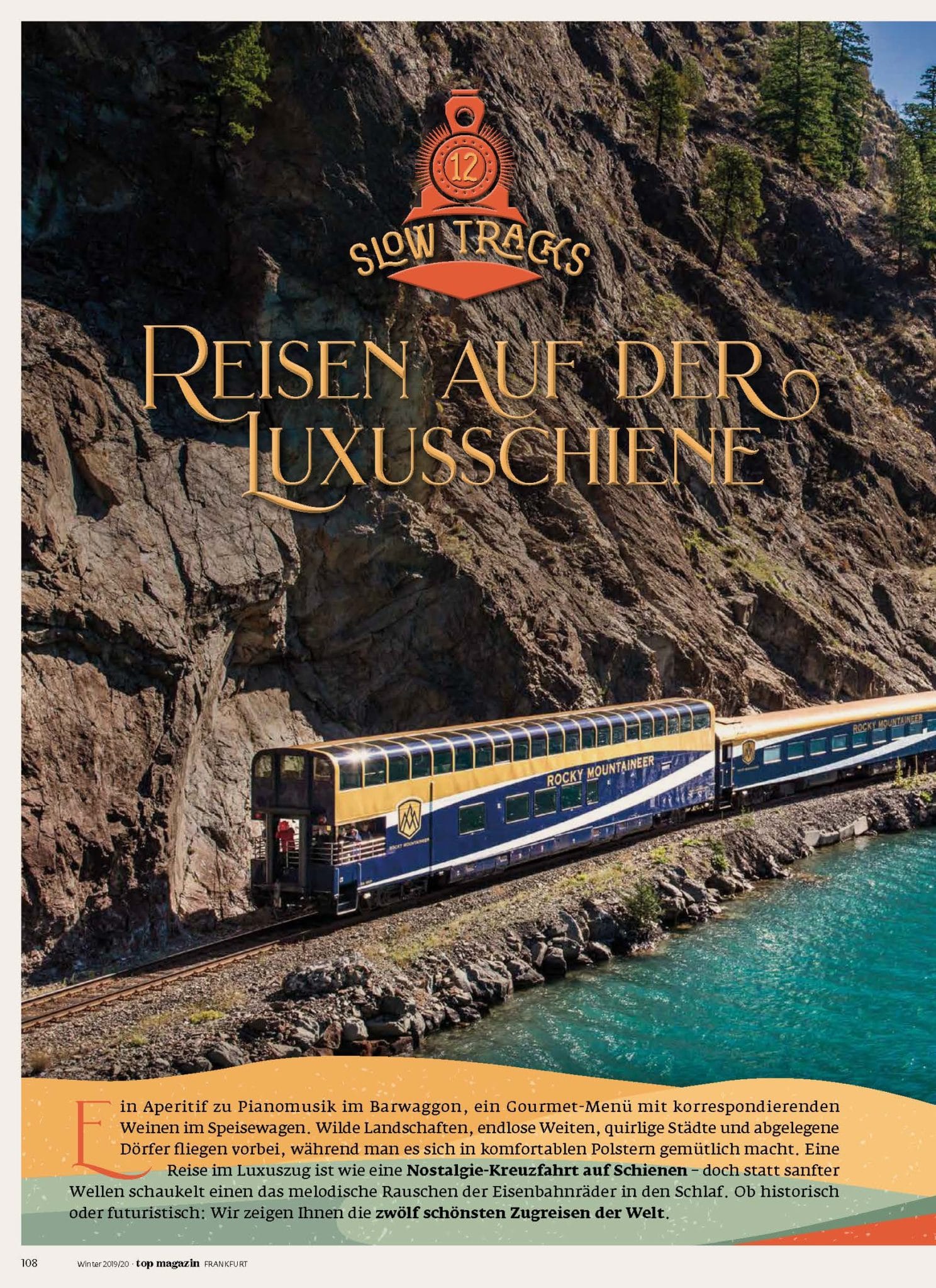 Ein Aperitif zu Pianomusik im Barwaggon, ein Gourmet-Menü mit korrespondierenden Weinen im Speisewagen. Wilde Landschaften, endlose Weiten, quirlige Städte und abgelegene Dörfer fliegen vorbei, während man es sich in komfortablen Polstern gemütlich macht. Eine Reise im Luxuszug ist wie eine Nostalgie-Kreuzfahrt auf Schienen – doch statt sanfter Wellen schaukelt einen das melodische Rauschen der Eisenbahnräder in den Schlaf. Ob historisch oder futuristisch: Wir zeigen Ihnen die zwölf schönsten Zugreisen der Welt.