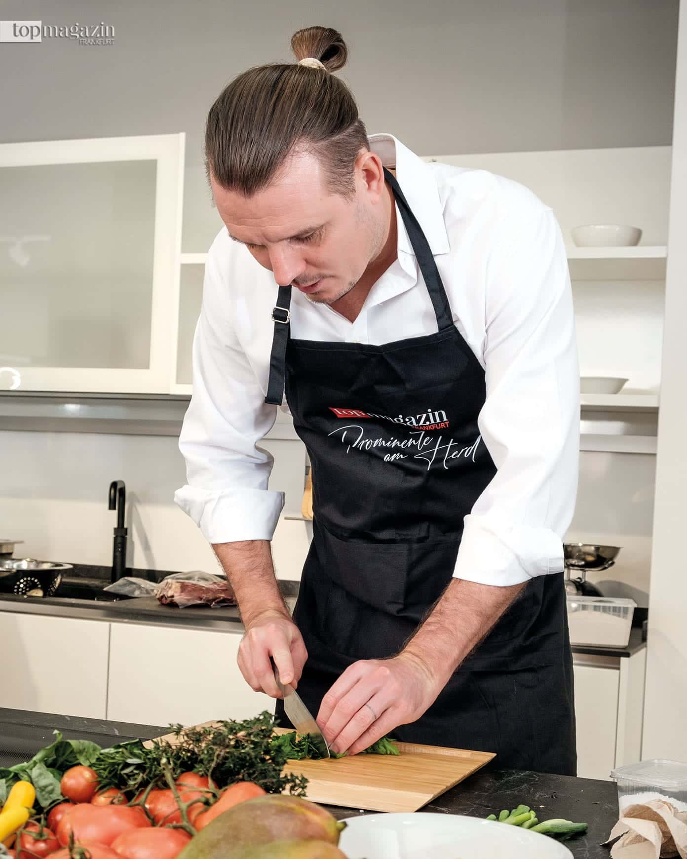 Im Eschborner Küchen Atelier Grohs will er Burrata mit Bresaola und einem Chili-Mango-Dressing zaubern. Danach soll es Paccheri mit Rinderstreifen geben – „mein Lieblingsgericht“. Wir dürfen ihm über die Schulter schauen. Von Lampenfieber ist wenig zu bemerken, auch wenn er seine Kochkünste für ausbaufähig hält. Er nimmt sich Zeit und plaudert auch über die eigene Karriere und seine Pläne. Kochen als Entspannung – so soll es sein.