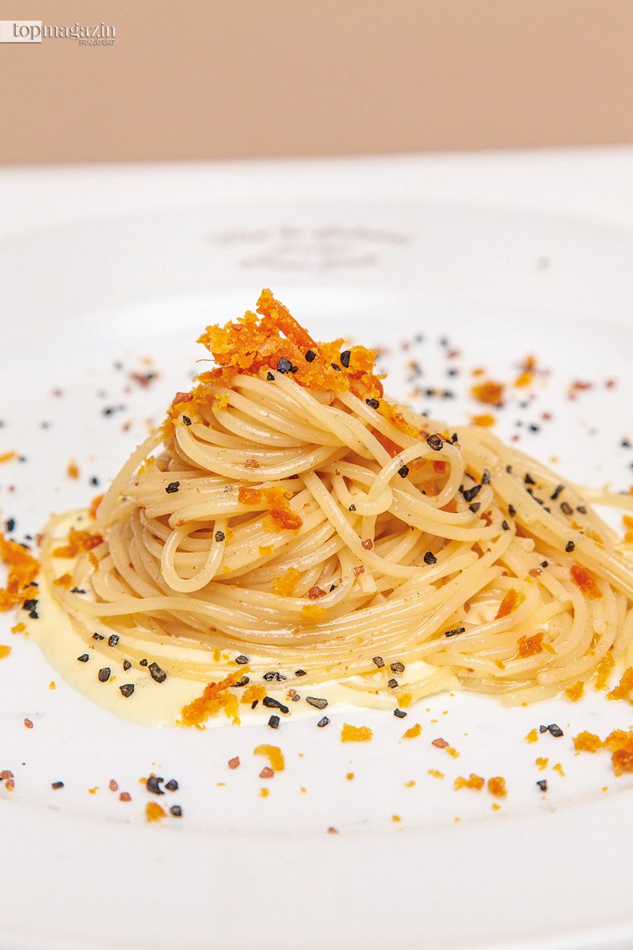 Carmelo Greco hat in seinem gleichnamigen Sternerestaurant in Frankfurt eine Offensive gestartet, die das Thema geschickt auffängt: Pasta Deluxe. Bislang hielt sich Carmelo Greco mit Pasta eher zurück, weil er glaubte, dies würde nicht seiner Reputation als einer der besten Italiener Deutschlands entsprechen. Wenn aber jemand so gut Pasta zaubern kann wie Carmelo Greco, wäre es töricht, diese Trumpfkarte nicht auszuspielen.