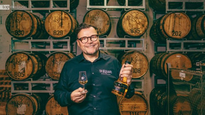 Der Unterfranke hat eine Mission. Er will mit seinen Drinks „made in Germany“ Furore machen. Der wuchtige Finanzjongleur platziert sich unter eine kleine vergoldete Figur aus dem Barock, die an einer Mauer hängt, und erzählt zur Einstimmung eine Geschichte. „Dieser Heilige da oben stammt aus Irland und heißt St. Kilian“, fängt er an. Nach ihm sei die Brennerei benannt.