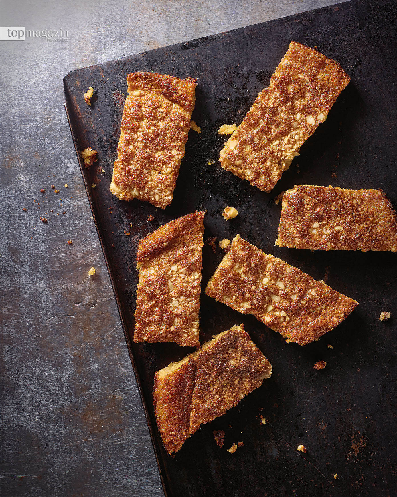 - Herausnehmen und etwas auskühlen lassen. Dann in Rechtecke schneiden und lauwarm servieren.