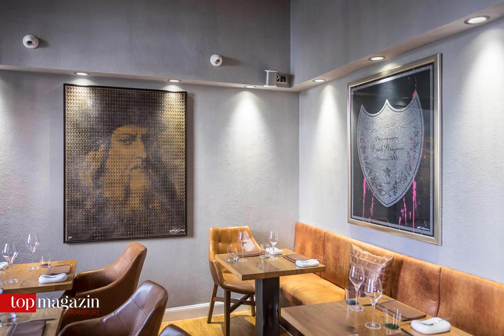 Die Kunstwerke, die das Spitzenlokal mit 18 Sitzplätzen zieren, stammen aus der privaten Sammlung von Rennbahn-Vizepräsident Carl-Philip Graf zu Solms-Wildenfels, der die organisatorischen Geschicke seit Juli als neuer Inhaber leitet. „Aktuell hängen Siebdrucke des Frankfurter Künstlers Max Wiedemann an den Wänden. Alle paar Monate wird ein neuer Künstler die Gelegenheit bekommen, seine Werke zu präsentieren“, erklärt Solms-Wildenfels, der auch Vernissagen im Restaurant veranstalten will.
