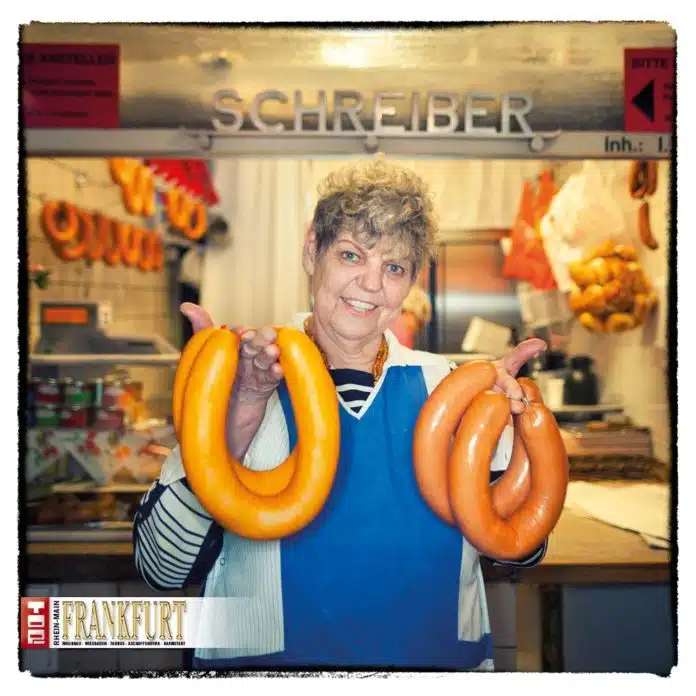 Keine Scheu hingegen zeigt Ilse Schreiber, die oft liebevoll als „Seele der Kleinmarkthalle“ und „Königin der Würste“ bezeichnet wird und in keiner Berichterstattung fehlt. Herzlich und mit Frankfurter Schlappmaul verkauft sie Krakauer, Fleischwurst und Gelbwurst, mit und ohne Knoblauch, heiß oder kalt, direkt auf die Hand und vor Ort eingeschweißt zum Mitnehmen.