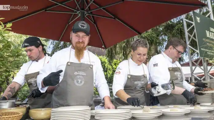 Ein Koch-Zelt weiter war Ralf Zacherl mit einem fröhlichen „Habt ihr Lust auf einen geilen Salat?“ zu hören, der sich vor Fotowünschen kaum retten konnte. Starkoch Frank Rosin voll des Lobes: „Seit zehn Jahren findet hier ein kulinarisches Sommerfest mit familiärem Flair statt, was es in Deutschland und Europa kein zweites Mal gibt. Wie das Ganze strategisch aufgebaut ist, das ist schon einzigartig.“