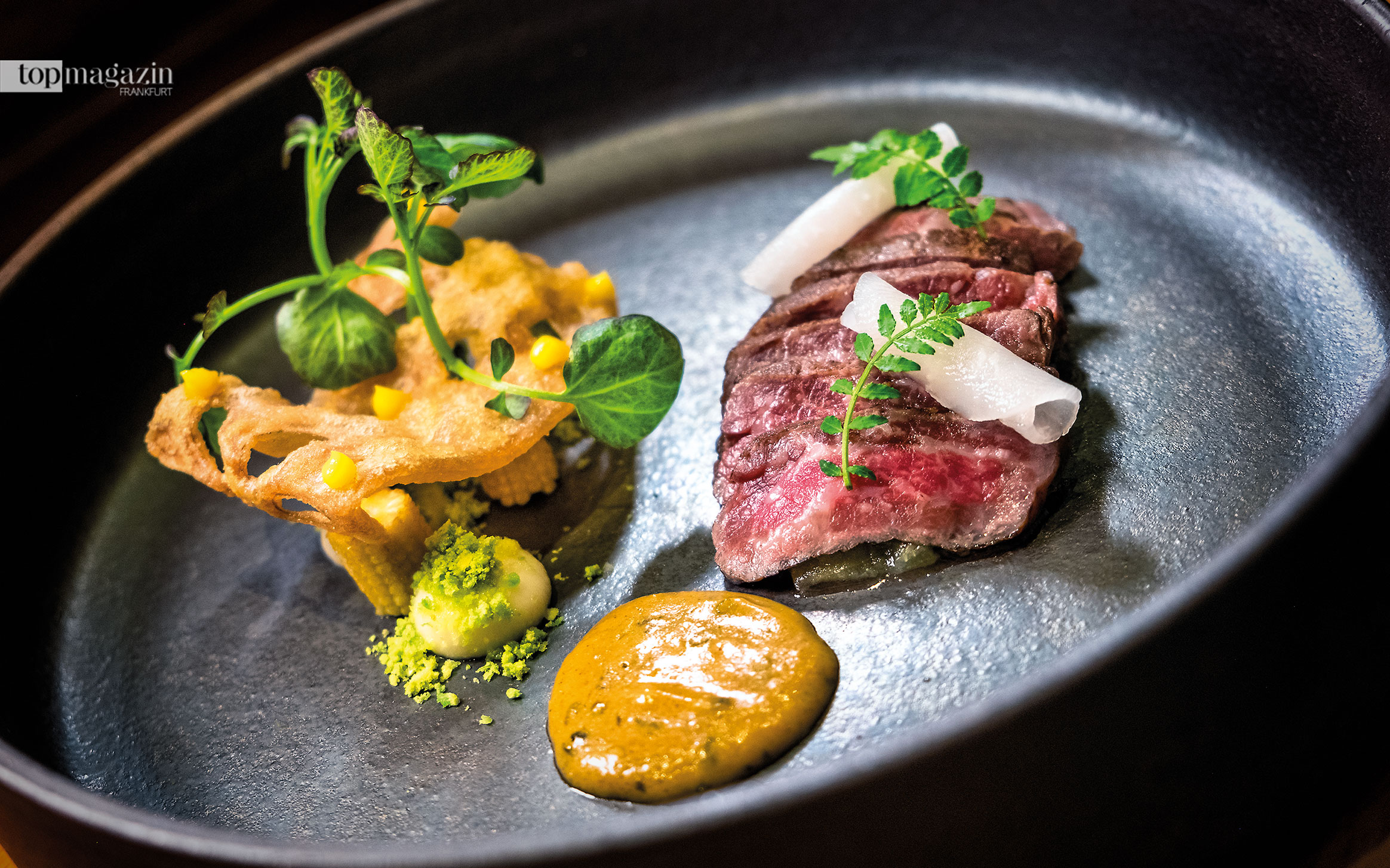 Der Vorspeisenteller glänzt mit den großen Klassikern wie Thunfisch-Tatar mit Kaviar, Yuba in einer verfeinerten Wasabi-Soja-Soße und gegrilltem Aal. Hauptspeisen-Highlights: In Koji-Hefe marinierter weißer Kabeljau mit Pflaumensoße und das Lendenstück vom Wagyu-Rind auf Aubergine, das nur so auf der Zunge zergeht. Das butterzarte Fleisch mit A4-Klassifizierung stammt aus Kagoshima im Süden Japans, ganz in der Nähe von Masaru Oaes Heimat Miyazaki. Und dann das süße Finale: Mit so sensationellen Verführungen wie dem Sakura-Törtchen oder Kokosnuss-Pannacotta. Die feine Auswahl an deutschen und französischen Weinen sowie Sake ergänzen das Menü perfekt. Jedes Gericht gleicht einem schmackhaften Kunstwerk, das es auch als Masa-Box im Take-Away gibt.