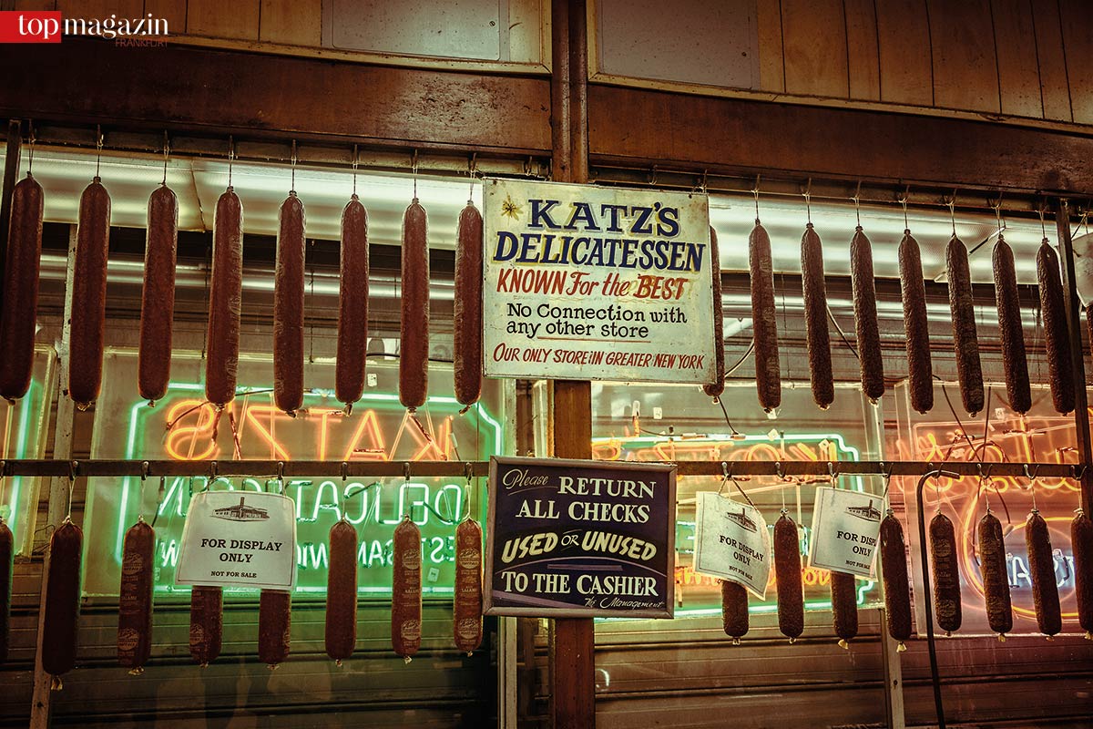 „Home of the best Pastrami in Town” verkündet vollmundig die Speisekarte im Carnegie Deli. Dort wird besonders das nach Woody Allen benannte Sandwich gepriesen, das seinen Film Broadway Danny Rose berühmt gemacht haben will und sich nur für den aktiven „Fresser“ eignet – ein vom großportionssüchtigen Deutschland geborgtes Wort. Für 14,95 bis 17,95 Dollar gibt’s „lotsa Pastrami“. Ein Pfund in krosses Roggen-Toast gedeckeltes, dünn geschnittenes, rosarotes und warmes Mastochsenfleisch.