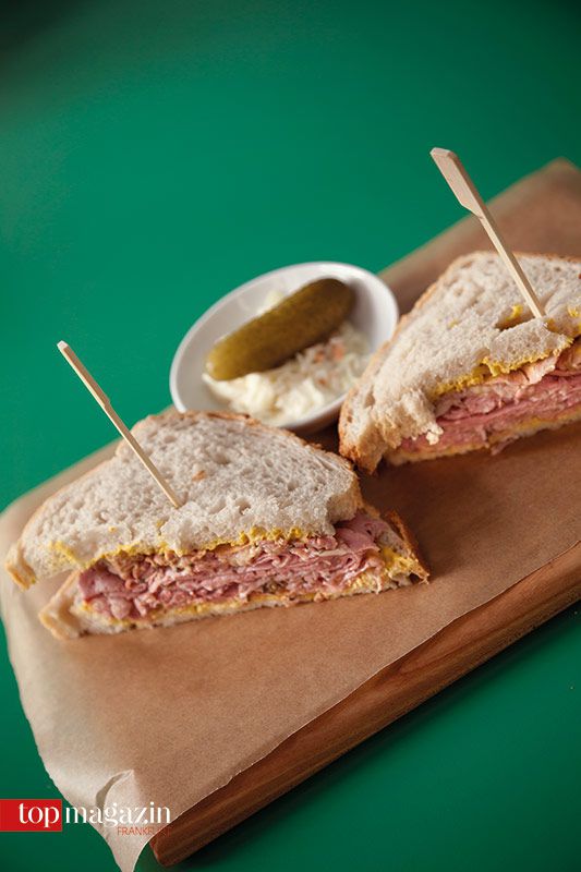 Unvergleichlich gewürzt, heiß geräuchert, saftig-zart. Harmlos wie Carpaccio aussehend, aber weit ausdrucksvoller im Geschmack. Ein Sandwich für Singles, weil man sich damit stundenlang alleine beschäftigen kann und nicht reden, sondern nur kauen muss. Die, die es geschafft haben, lächeln von den Wänden: Box-Mogul Don King und selbst der eher wie ein Vegetarier aussehende Woody Allen.