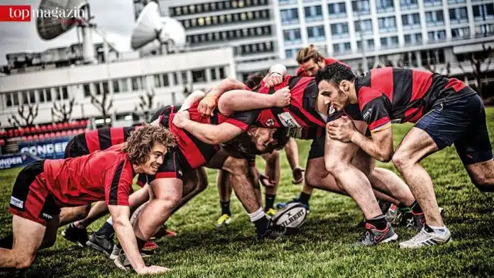 Rugby – der Kampf ums Ei. Schnell, brutal, ein Sport für Raufbolde? Mitnichten. Die Spieler pflegen die Tugenden des Rittertums, aber Kleinigkeiten wie ein Stollenschuh im Gesicht müssen sie wegstecken können. Top Magazin Frankfurt schaute bei einer Trainingseinheit des Rugby-Pioniers SC 1880 zu und ließ sich von Nationalspieler Mark Sztyndera den Kick und die Regeln erläutern.