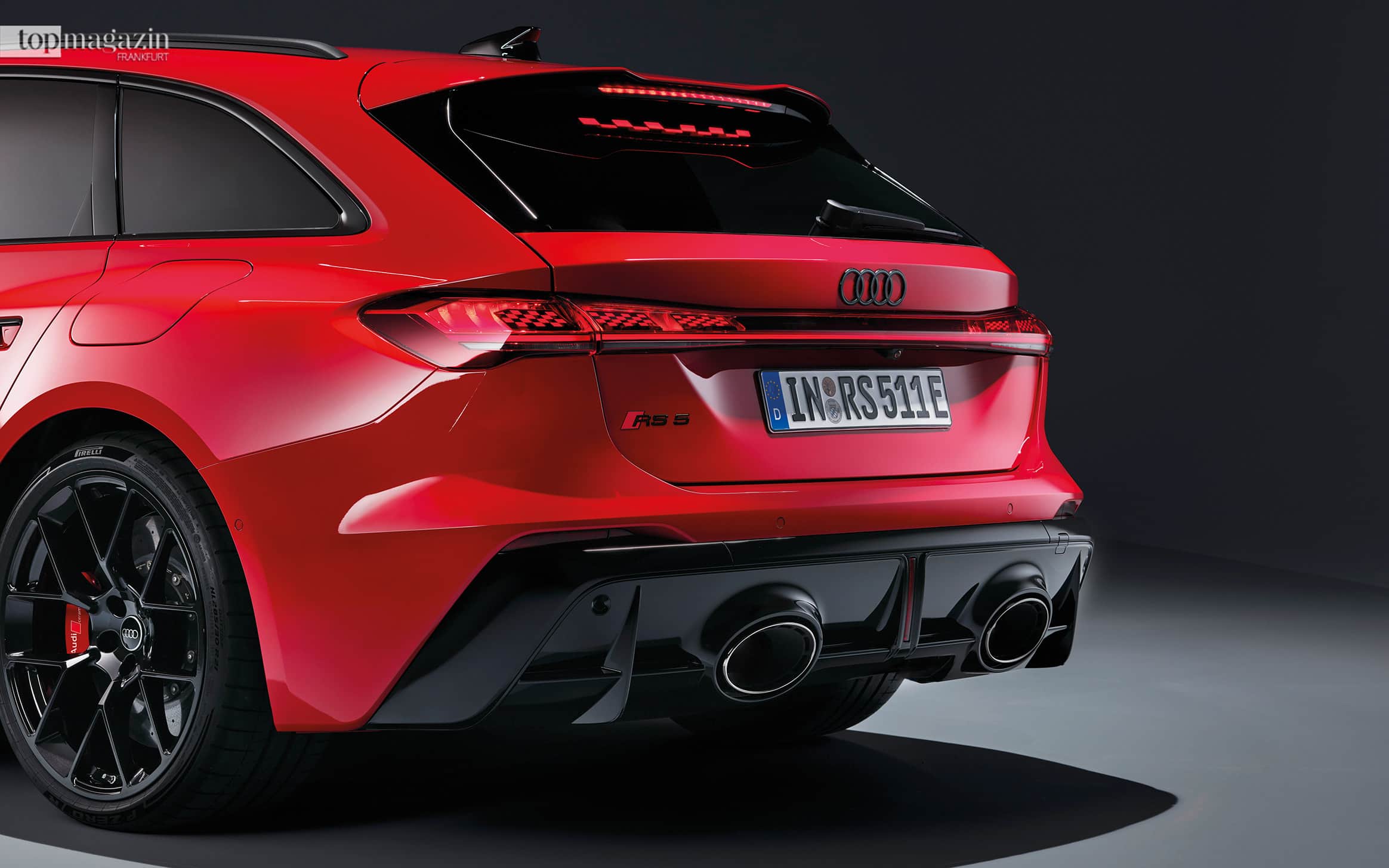 Audi RS 5 Avant: Kraftstoffverbrauch (gewichtet kombiniert): 4,5–3,9 l/100 km (vorläufig); Stromverbrauch (gewichtet kombiniert): 18,7–17,8 kWh/100 km (vorläufig); CO2-Emissionen (gewichtet kombiniert): 102–88 g/km (vorläufig); CO2-Klasse (gewichtet kombiniert): C-B (vorläufig); Kraftstoffverbrauch bei entladener Batterie (kombiniert): 10,2–9,6 l/100 km (vorläufig); CO2-Klasse bei entladener Batterie: G (vorläufig)