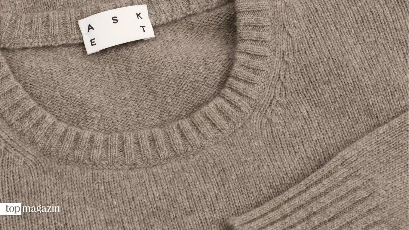 Der „Cashmere Sweater“ von Asket fühlt sich auf der Haut wohlig weich an und besteht zu fast 100 Prozent aus recyceltem Kaschmir. Dicht gestrickt ist er der perfekte Begleiter für einen gemütlichen Abend am Kamin.