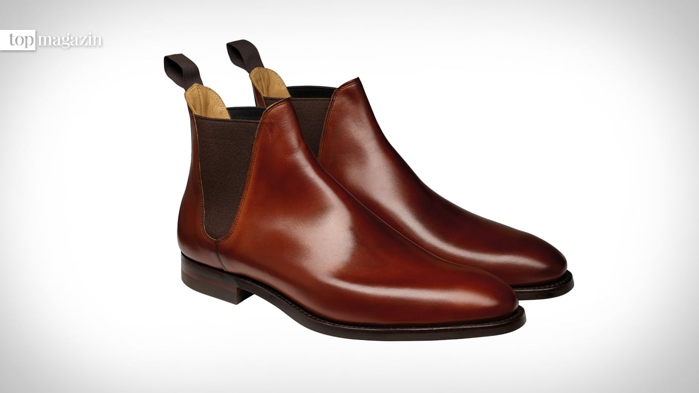 Aus feinstem Kalbsleder gefertigt, versprechen die kastanienbraunen Chelsea 8 der britischen Traditionsmarke Crockett & Jones besondere Eleganz und Tragekomfort – der Klassiker im Schuhregal!