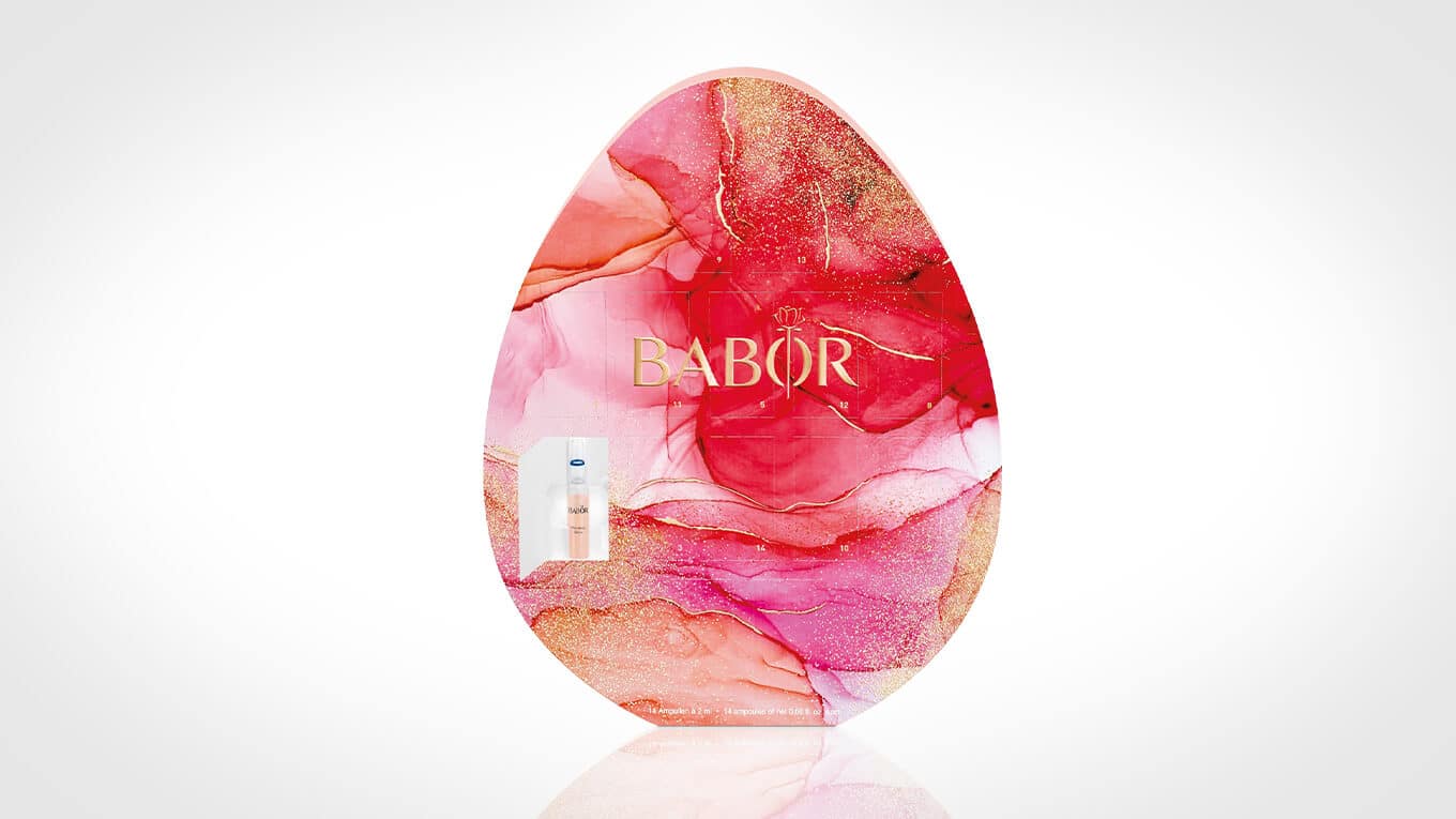 Die limitierte 14-tägige Babor Osterei-Ampullenkur versorgt Ihre Haut intensiv mit Feuchtigkeit, bedient gezielt die Bedürfnisse des Alltags und verleiht Ihnen schnell und effektiv eine jugendliche Frische. Als Abschluss sorgen die drei Grand Cru Ampullen für einen extra jugendlich strahlenden Teint.