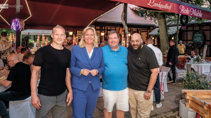 Medienmanager Bernd Reisig lud zum Sommerfest seiner Stiftung „helfen helfen“ in die idyllische Rote Mühle am Liederbach. 150 Gäste feierten unterm Blätterdach im Bad Sodener Taunuswald, köstlich bewirtet von den Gastro-Brüdern Madjieb, Mahbub und Nassrat Jamali.