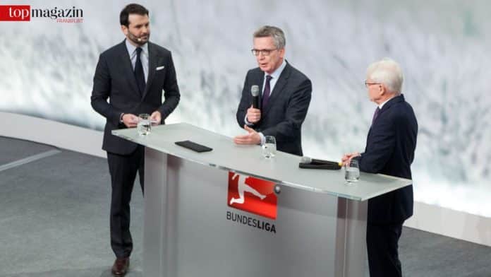 Ein ebenfalls sensibles und nicht nur für den Fußball heikles Thema sprach Bundesinnenminister Thomas de Maizière in der Podiumsdiskussion an, der eben aus diesem aktuellen Anlass das erste Mal am Empfang teilnahm: die gestiegene Gefahr terroristischer Anschläge auf Großveranstaltungen.