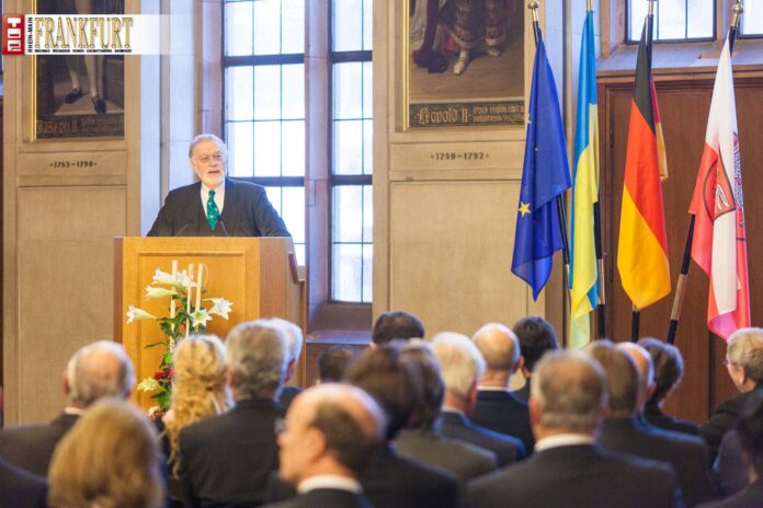 Als letzte Amtshandlung empfing der scheidende Stadtrat und Infrastrukturdezernent der Stadt Frankfurt am Main Volker Stein Seine Exzellenz Minister und Botschafter der Ukraine a.D. Professor Dr. phil. habil. Volodymyr Yevtukh im Kaisersaal des Frankfurter Rathauses.