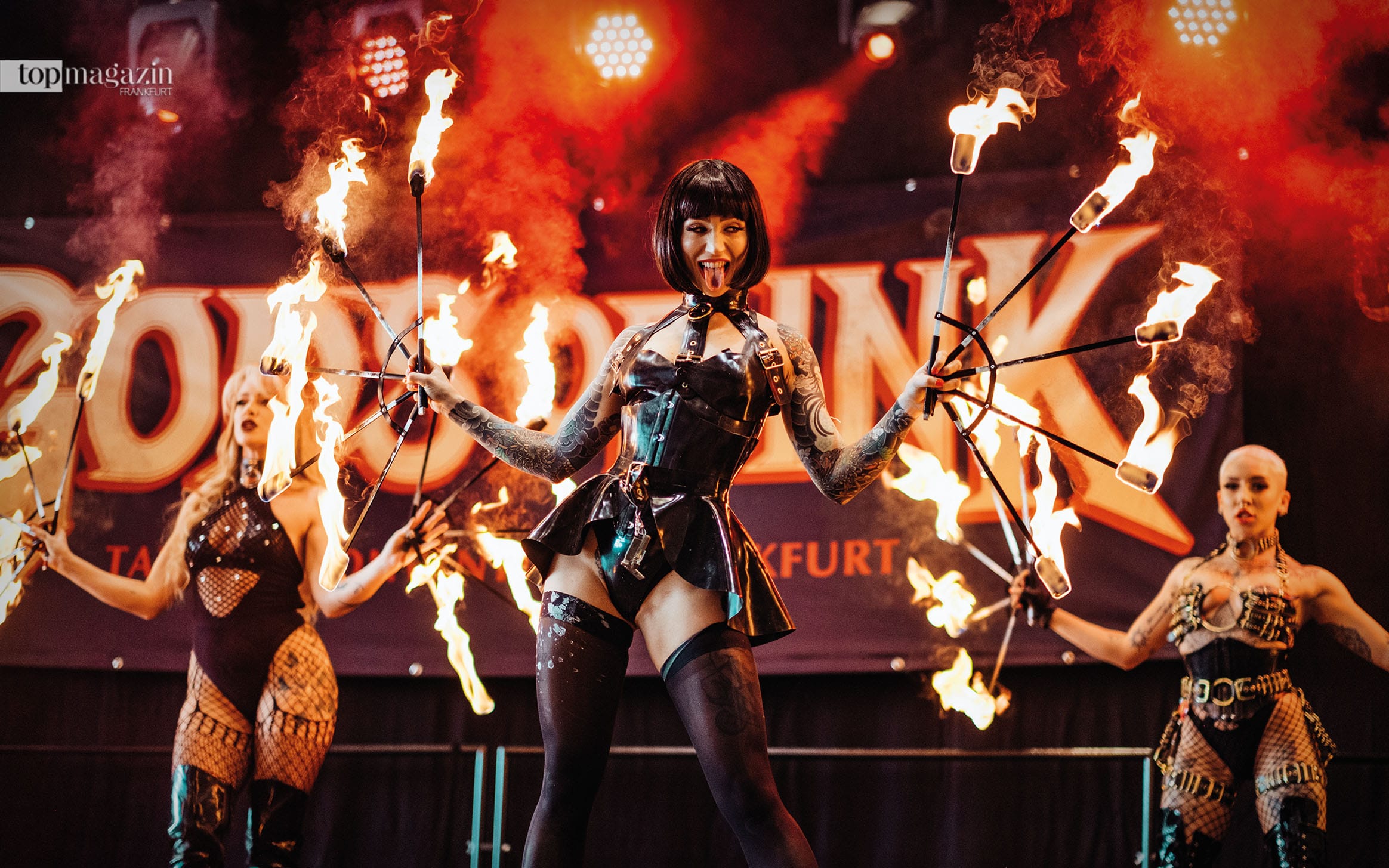 Drumherum gab‘s Kunstausstellungen, Tattoo-Competitions, Musik- und Show-Acts. Über Besucher, die äußerst knapp bekleidet bis hin nur im String-Tanga flanieren, um ihre Tattoos bewundern zu lassen, wundert sich bei dieser extravaganten Messe übrigens kein Mensch.