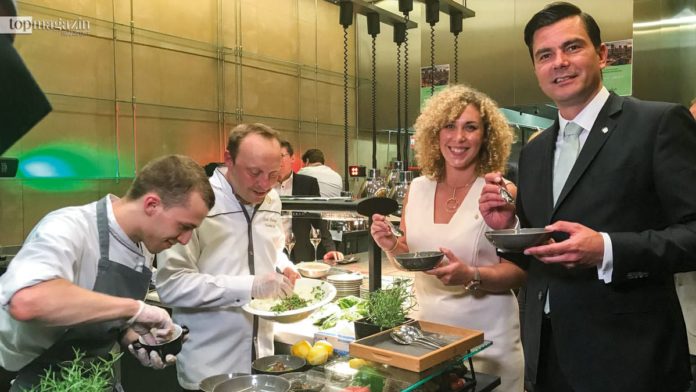 Dass die besten Partys in der Küche stattfinden, bewies einmal mehr die Frühlings-Küchenparty des Jumeirah Frankfurt. Küchenchef Frank Hartung hatte in den Max on One Grillroom geladen, wo die rund 100 Gäste in der offenen Küche und an diversen Genussstationen mit Köstlichkeiten von ihm und verschiedenen Gastköchen verwöhnt wurden.