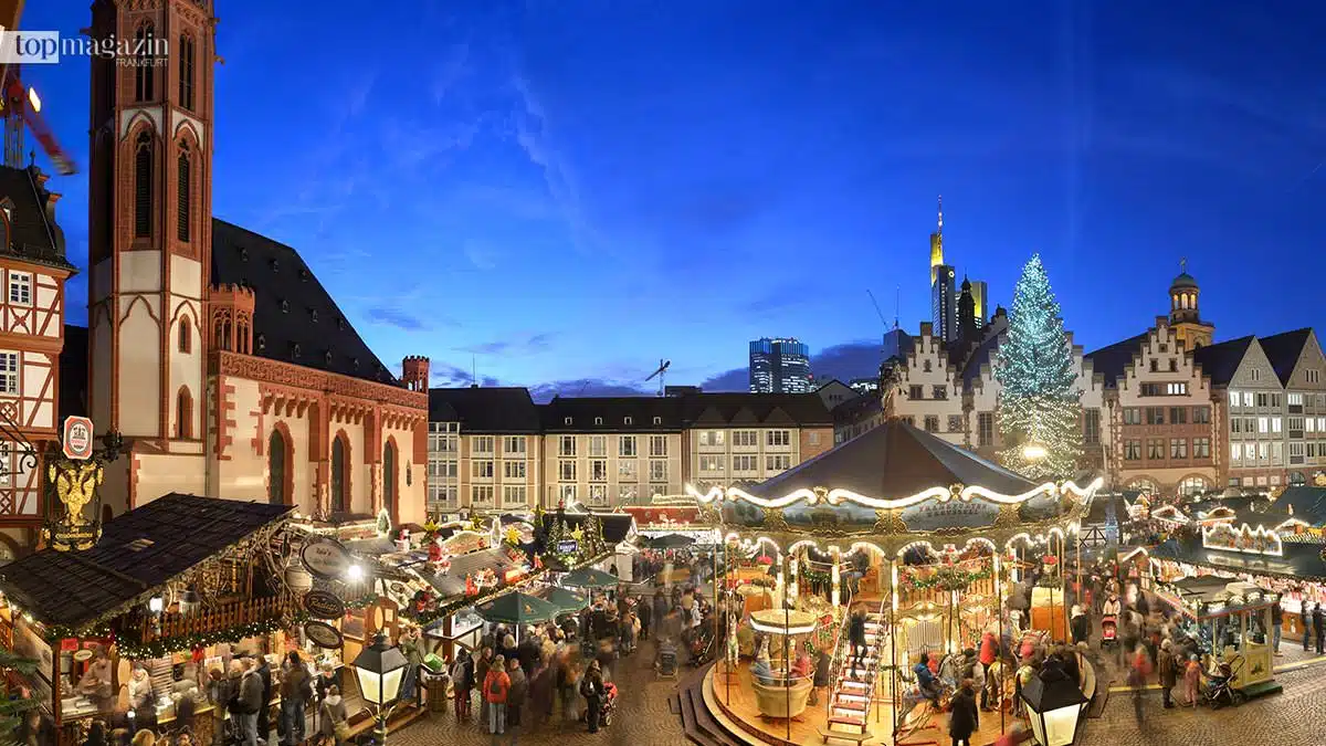 Zwischen dem 33 Meter großen, geschmückten Weihnachtsbaum, dem Duft von Bratäpfeln und gewürztem heißem Apfelwein werden sich auch in diesem Jahr tausende Besucher tummeln. Erstrecken wird sich der Weihnachtsmarkt von der Hauptwache über den Paulsplatz und den Römerberg bis hinunter zum Mainufer.