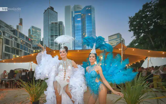 Verkleidete Artisten, Tänzerinnen in Federboas und chillige Elektro-Musik – mit einem pompösen Grand Opening hat der Gibson Club am Opernplatz die Pforten zu seinem neuen Beach Club geöffnet.