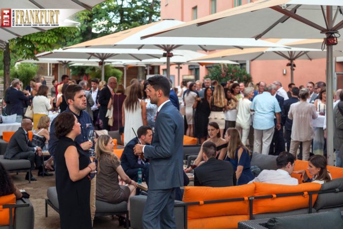 Ganz im Sinne dieser Devise feierten und netzwerkten auch die Gäste in einer äußerst entspannten, ungezwungenen Atmosphäre. Kulinarisch blieben dabei keine Wünsche offen: Auf fliegenden Tabletts offerierte das durchweg gelobte Service-Team von Betriebsleiter Stephan Prinz pikante Delikatessen aus der Küche von Jörg Ludwig wie Kalbsfleischpflanzerl mit Löwensenf und krosser Kartoffel, Austern ‚Creuses‘ mit Gurke, Vodka und Champagneressig oder Flusskrebsmaultaschen mit Pfifferlingen an Basilikum-Schaum.