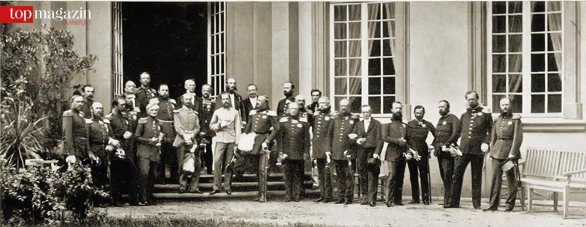 Das änderte sich im Kaiserreich, für das der Startschuss noch am Main fiel. 1871, der Krieg gegen Frankreich war gewonnen, unterzeichneten Otto von Bismarck und der französische Außenminister im Frankfurter Luxushotel „Zum Schwanen“ den Friedensvertrag. „Das Friedenszimmer im Steinweg blieb fortan unberührt und durfte bis zu seiner Zerstörung im Zweiten Weltkrieg von Touristen besichtigt werden“, weiß Sabine Mannel. Heute steht dort eine Buchhandlung. Aus und vorbei. Der Preußenkaiser holte die Regierungsgeschäfte gebündelt nach Berlin und das stolze Frankfurt schaute in die Röhre, die „Kaiserstraße“ war ein letzter Anbiederungsversuch.